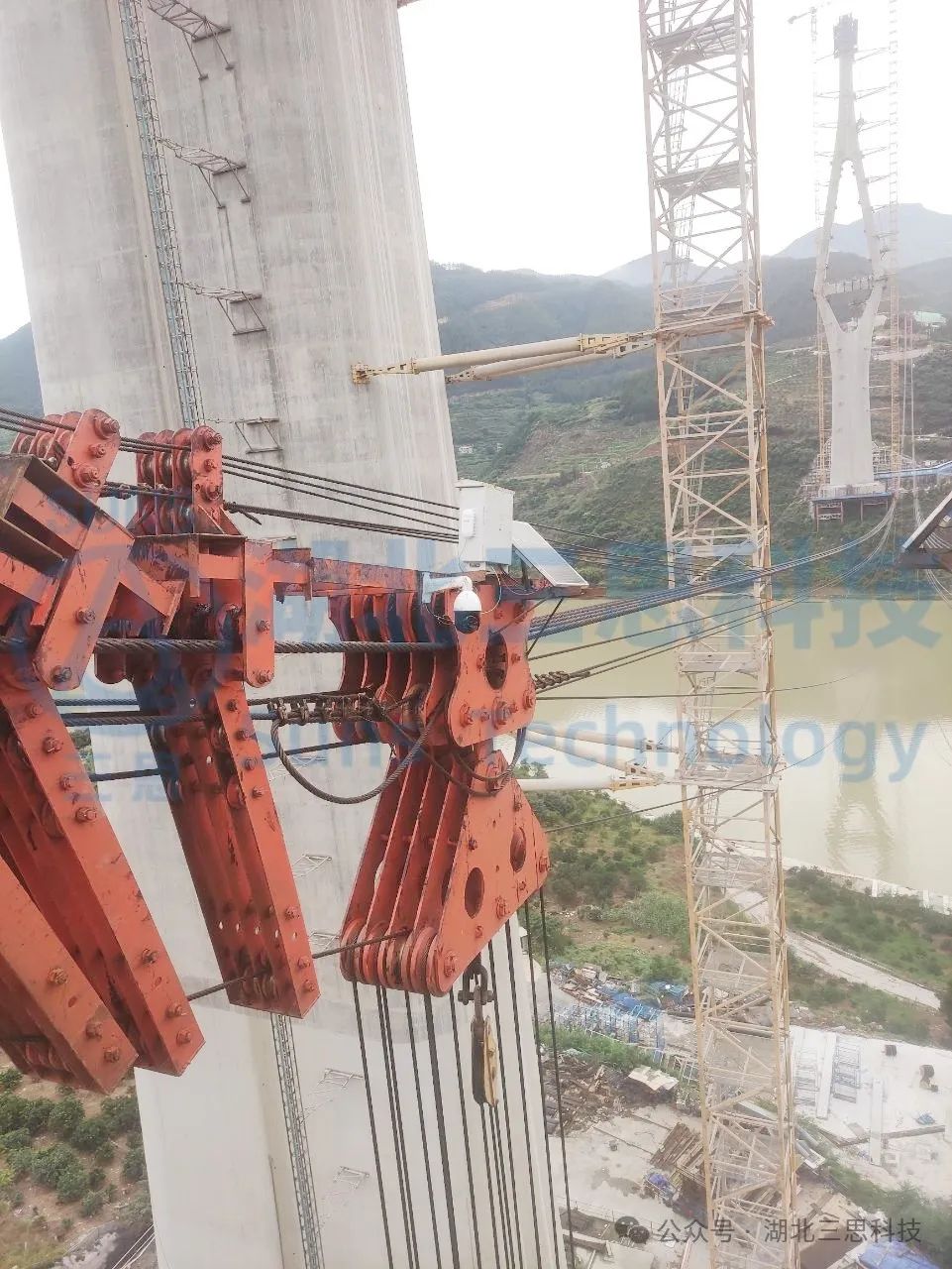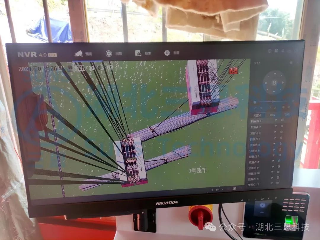 本次大溪河特大橋采用了由湖北三思科技自主研發(fā)的SSL-CB型纜索吊集中控制系統(tǒng),本系統(tǒng)是專門針對纜索吊此類特殊起重機(jī)開發(fā)的控制系統(tǒng),不僅包含了常規(guī)的特種設(shè)備監(jiān)控系統(tǒng)所需求的數(shù)據(jù)和視頻監(jiān)控之外,還特別添加了可將纜索吊卷揚(yáng)機(jī)控制集中到一處控制的功能。集中控制不僅減少了人力成本,方便了操作員集中操作,更使纜索吊控制變得簡便、更安全,更提高了施工現(xiàn)場的吊裝效率,大大縮短了工程工期。