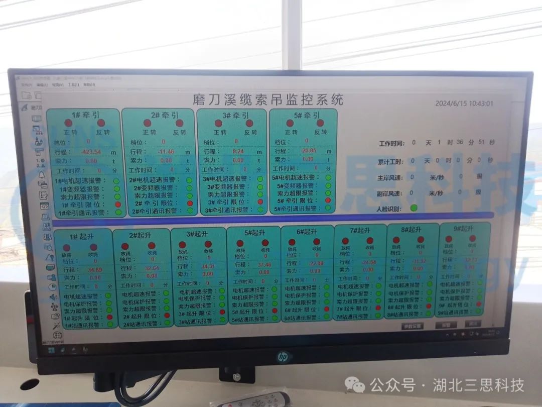 該橋江口、龍缸兩岸拱座均背靠在陡峭的山體,垂直于磨刀溪河施工現(xiàn)場,有滑坡危巖、巖石裂隙發(fā)育,現(xiàn)場施工場地狹小、危險系數(shù)高、施工難度大。因此,本項目纜索吊機采用了由湖北三思科技自主研發(fā)的纜索吊機集中控制管理系統(tǒng),使設備的操作方式由傳統(tǒng)的“一人控制一機”升級為“一人控制多機”,同時設備在運行過程中既可多機聯(lián)動,亦可單機獨動,為智能化安全管理提供有效保障。